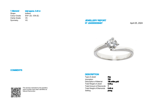 Anello in oro 18k con 0,40 CT di Diamanti D-E VS con certificazione HRD ANTWERP...