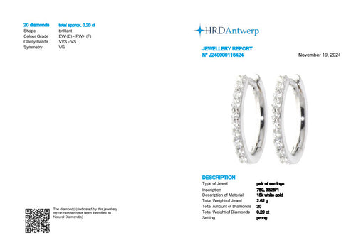 Orecchini in oro 18k con 0,20 CT di Diamanti E-F VVS-VS con certificazione HRD ANTWERP...