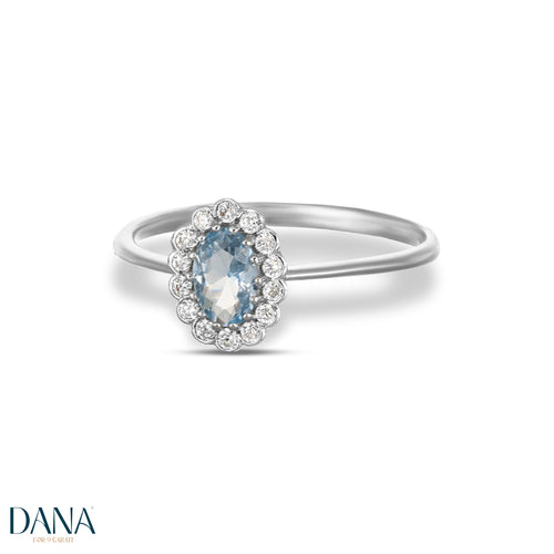 L’anello Charlotte è un classico intramontabile reinterpretato in chiave contemporanea. La montatura ovale in oro 9 carati esalta la pietra centrale colorata, incorniciata da zirconi bianchi scintillanti che regalano profondità e luce.