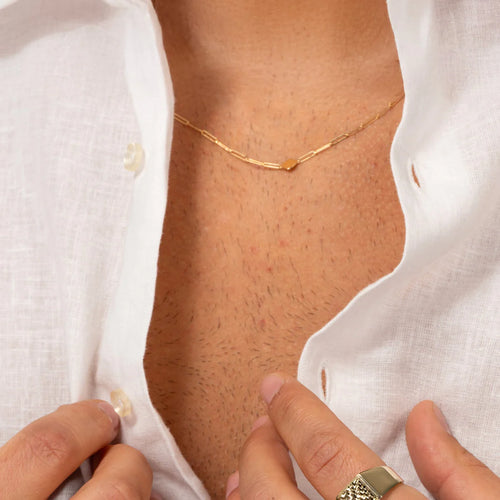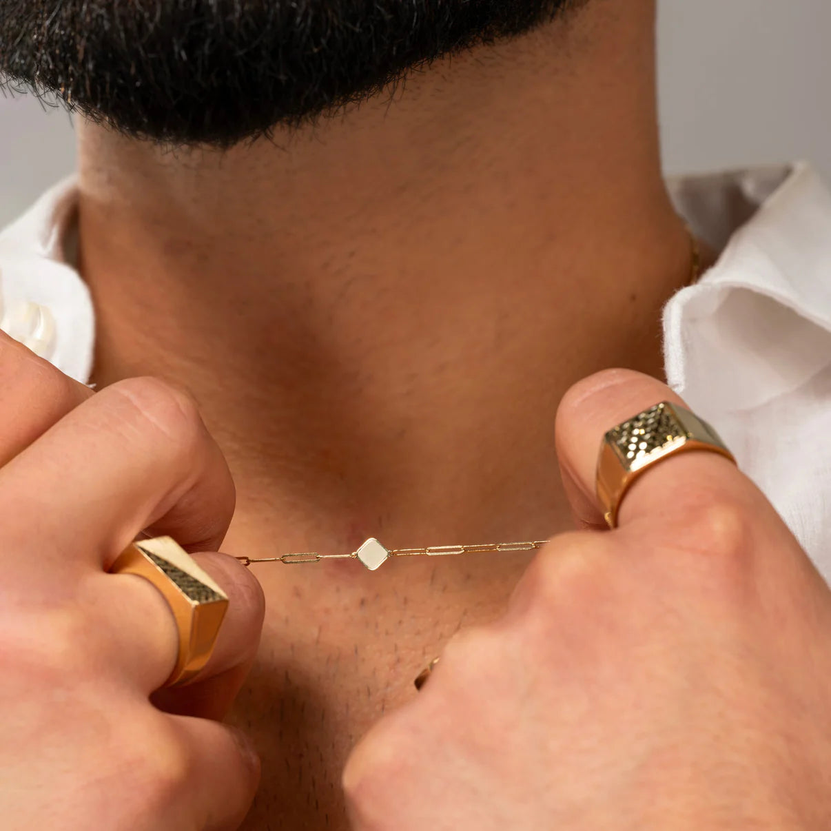 Disegnata per chi vive la città con stile, la collana Urban Square unisce linee pulite e carattere deciso. Realizzata in Oro 9 Carati, si compone di riportini alternati lucidi di forma quadrata, per un effetto moderno e dinamico. Ogni riportino può essere personalizzato con un'incisione, rendendo il gioiello unico e personale.