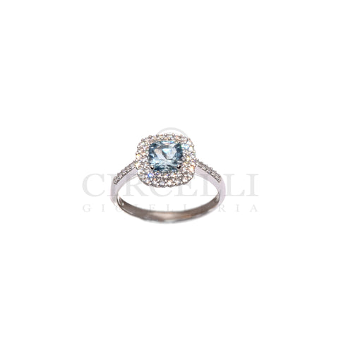 Anello topazio e zirconi bianchi, oro 18k