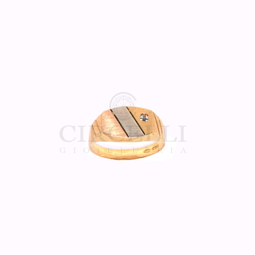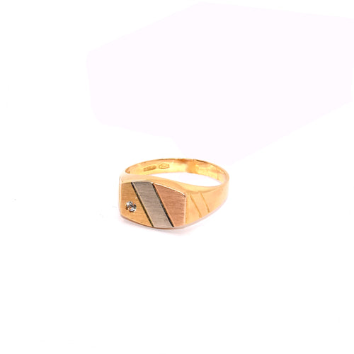 Anello tre ori 18k, lavorazione satinata, con zircone, modello da uomo