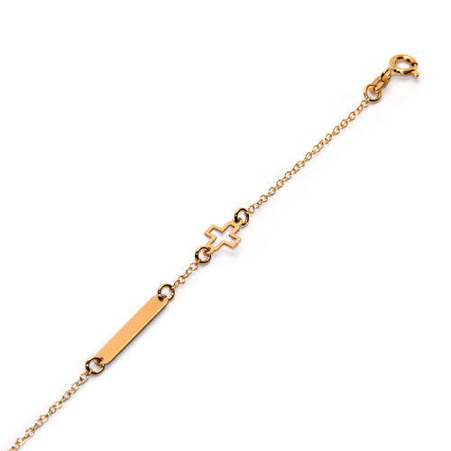 Bracciale da bambino con elemento croce e targa in oro 18k
