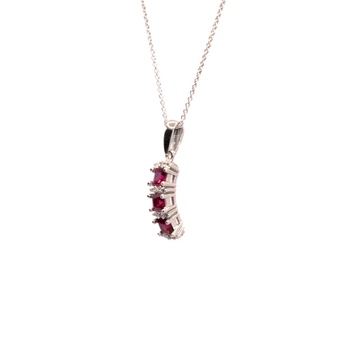 Collana con pendente da donna, con zirconi bianchi e zirconi verdi quadrati in Oro Bianco.