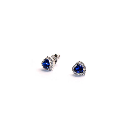 Forma Cuore con Pietra di Colore Blu e zirconi bianchi in Oro Bianco.