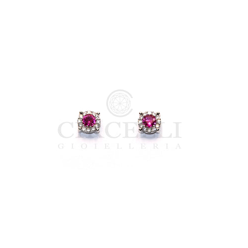 Forma Tonda con Pietra di Colore Rosso e zirconi bianchi in Oro Bianco.