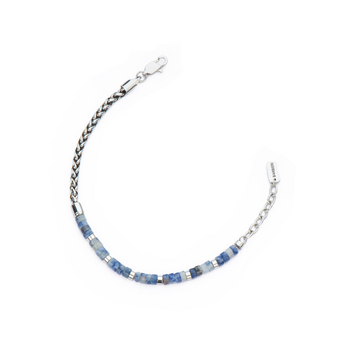 Steel pin chain with steel discs and lapis lazuli and blue mix/stones
