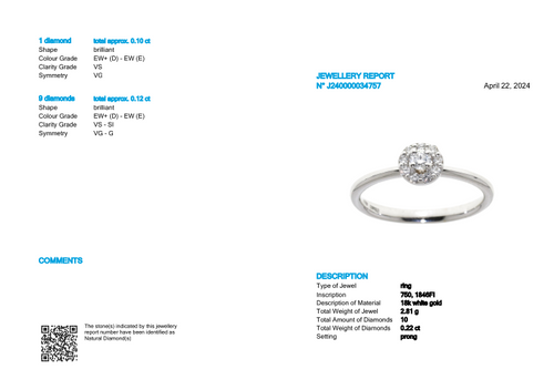 Anello in oro 18k con 0,22 CT di Diamanti D-E VS-SI con certificazione HRD ANTWERP...