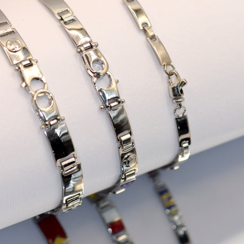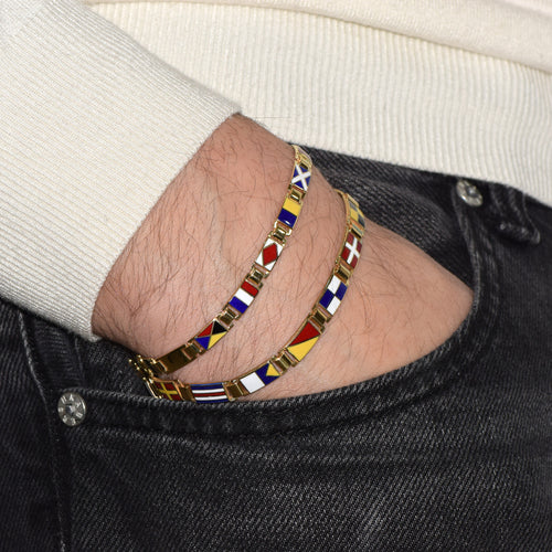 Bracciale in argento 925 impreziosito da inserti smaltati che riproducono le bandiere nautiche internazionali.