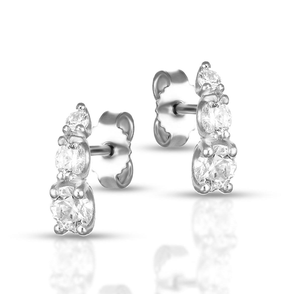 Luce che incornicia il viso con equilibrio perfetto.Gli orecchini trilogy a scalare riflettono ogni movimento con una brillantezza raffinata, mentre l’oro 9 carati — giallo o bianco — dona carattere e contemporaneità.